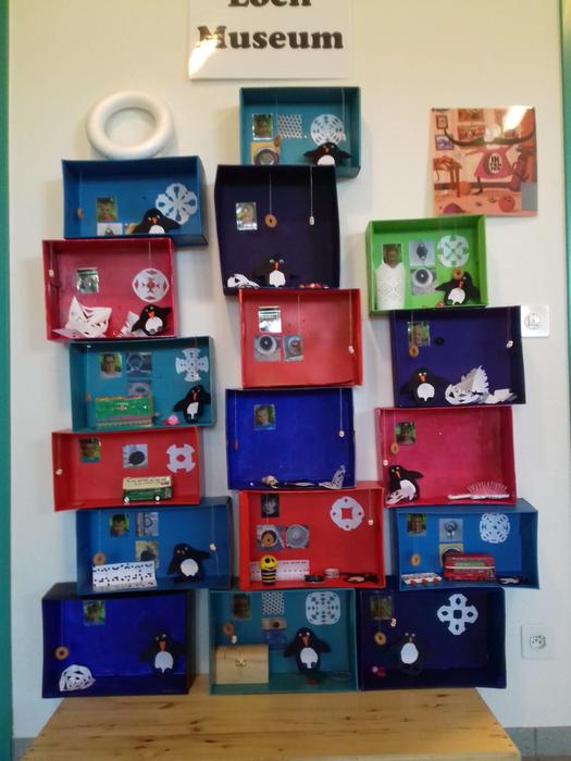 Das Löcher-Projekt ist ein durchaus witziges Jahresthema. Sinnigerweise bekam es den Übergang vom Zahnarzt her. Jedoch handelt sich hier nicht nur um Karies. Sondern themenunabhängig, um alles was ein Loch hat oder ist. Zuerst wurde der Eingang mit einem Loch versehen, zum Durchkriechen… danach gab es im ganzen Kindergarten immer mehr und mehr Löcher. Ein Loch-Museum entstand, indem die Kinder "eigene" Löcher sammelten und ausstellten.