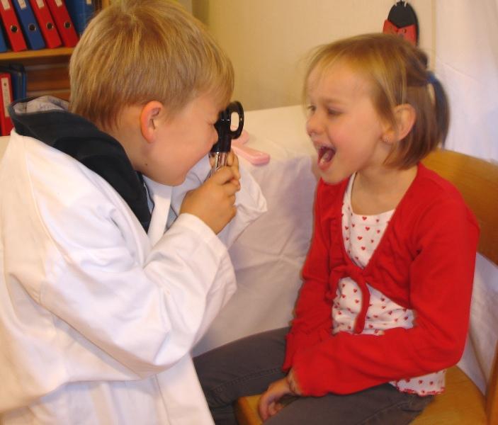 Wir beschäftigen uns mit unserem Körper, naja, hauptsächlich mit den Zähnen, den vorhandenen, den neuen oder auch den fehlenden. Was mögen die Zähne, was können sie und was gefällt ihnen nicht? Wie funktioniert eine Zahnpraxis? Das wird sofort ausprobiert und der Zahnarzt hat regen Zulauf. Natürlich müssen sich die Patienten bei der Dentalassistentin anmelden, welche entsprechende Anmelde- Formular bereithält, das Telefon bedient oder auch die Stühle und Zeitschriften im Wartezimmer ordnet.