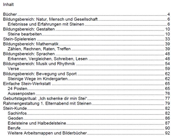 Die Arbeitsmappe wurde nach den Richtlinien des Kanton Thurgau: "Lehrplan für den Kindergarten" aufgebaut. Zu sämtlichen Bildungsbereichen gibt es vielseitige Anregungen.